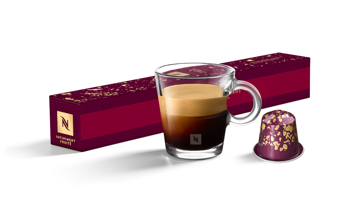 Когда Nespresso встречает Пьера Эрме, начинается история страсти и вкуса. Сочетание уникальных знаний в области кондитерских изделий и искусства совершенства кофе позволило нам создать коллекцию, посвященную чудесному сезону – началу года. Пьер Эрме и компания Master Roasters Nespresso объединились, чтобы создать коллекцию уникальных сортов кофе, одновременно ярких и вкусных. Насыщенная дегустация кофе, дополненная изысканными угощениями. Все было идеально совмещено, чтобы создать момент общего удовольствия. С первого взгляда на свежую малину появляется приятная терпкость, элегантно венчающая привлекательное кондитерское изделие. Свежая малина, пробуждающая чувства, вдохновила на приготовление этого ароматного эспрессо. Чтобы создать Infiniment Fruite, мы объединили соблазнительный вкус малины с базовой смесью южноамериканской арабики. Слегка обжаренный кофе уже обладает собственным ароматом— мягкими солодовыми нотками зерна. Этот округлый, мягкий вкус прекрасно сочетается с терпкими нотками малины. Все это создает элегантное впечатление, напоминающее изысканные творения, которыми можно любоваться в витрине кондитерского магазина.